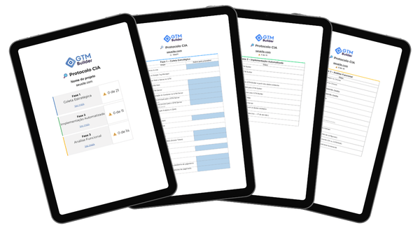 Você só precisa reunir as informações do seu projeto (como IDs e acessos) e seguir o passo a passo guiado do Protocolo CIA – que mostra exatamente o que fazer, onde clicar e como validar cada etapa da instalação.